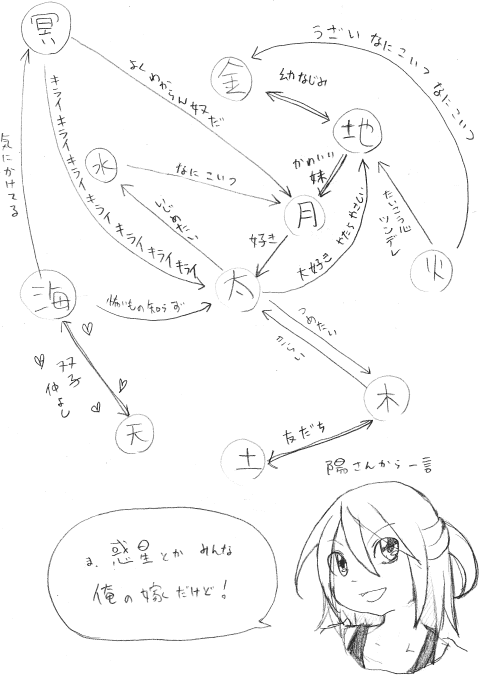 そういえば、「オリジナル」から分けて、太陽系擬人化カテゴリつくりました。