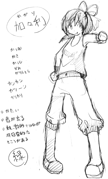 イメージカラーは落ち着いた紺色。描いてないけど、脚も紺タイツです。